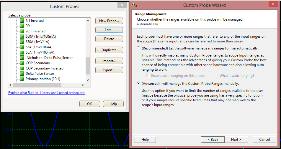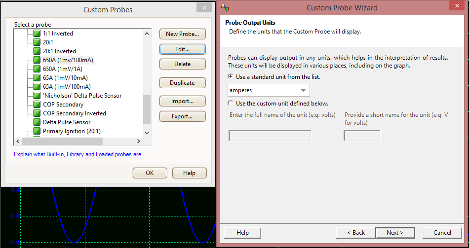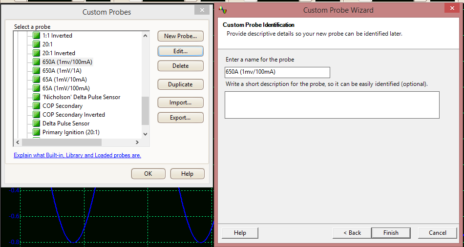 Keep in mind Pico gives you a bunch of probes in the Custom Probe list. If you duplicate one of these it will copy into the Library portion of the menu. From here you can edit and rename it as you will. You can even export your custom probes for safekeeping on a thumb drive or in the cloud. You can also save an instance of the loaded probes you are using so when you start the scope up the probes you want are already loaded ready to go!