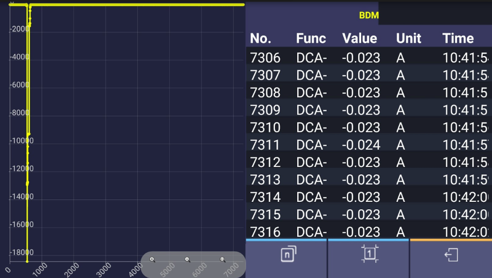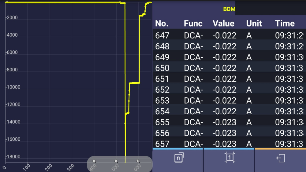But before I let it go, I want to make certain there's no other 'surprises' in store. That means watching the draw over time. I'm on flat rate, so I ain't got time to stand there and watch the meter. :lol: Out comes the phone and the Owon MultimeterBLE app. I cycle the key and the door locks to establish a baseline (and to check that the fix is repeatable):