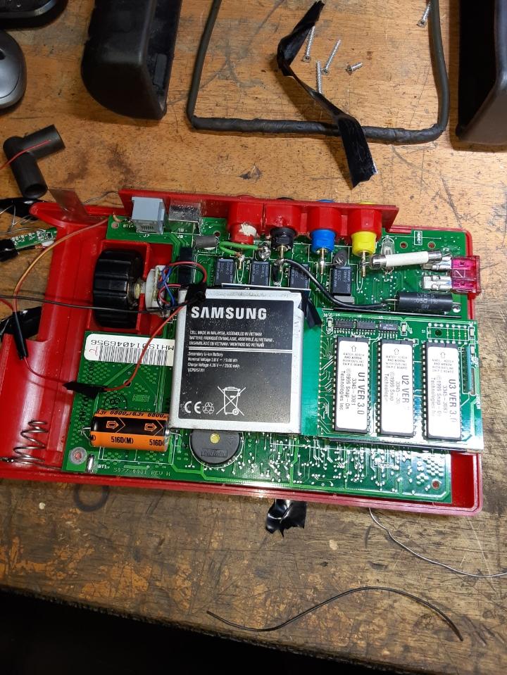 One D cell is 1.5v so 2 is 3v and the Samsung displays nominal voltage of 3.8v. Fully charged it measured just over 4v and ran the Vantage while measuring it's own battery voltage in graphing mode for 6hrs 45min.