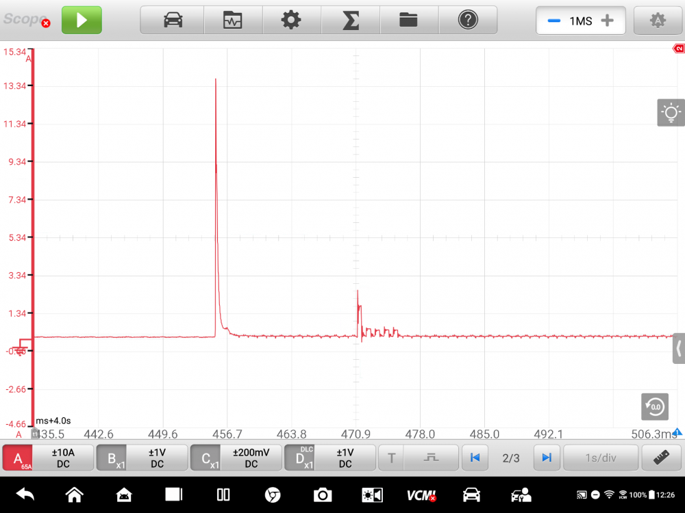 Some good current flow going on, and a couple solid spikes when power is first applied.