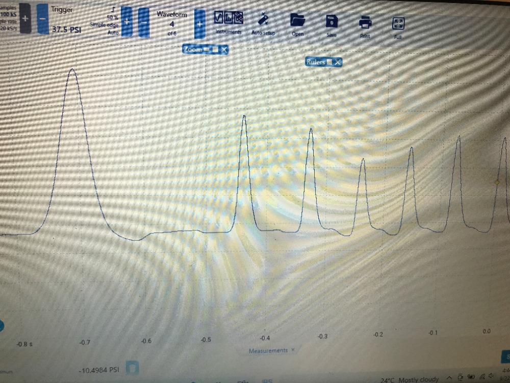 What are test conditions(cranking running)? What transducer are you using? Is this a known good cylinder? Or a suspect cylinder? The pictures aren't very good could you send me the whole file? AgardiAuto@gmail.com
