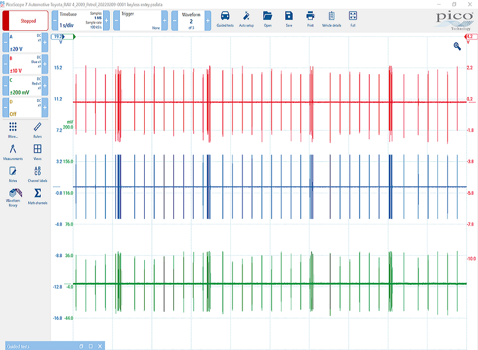 One was with the Pico TA 330, a dedicated probe for this specific purpose. Another intent was made with an inductive ckp and then finally I looped a standard test lead a couple of times around the door handle.