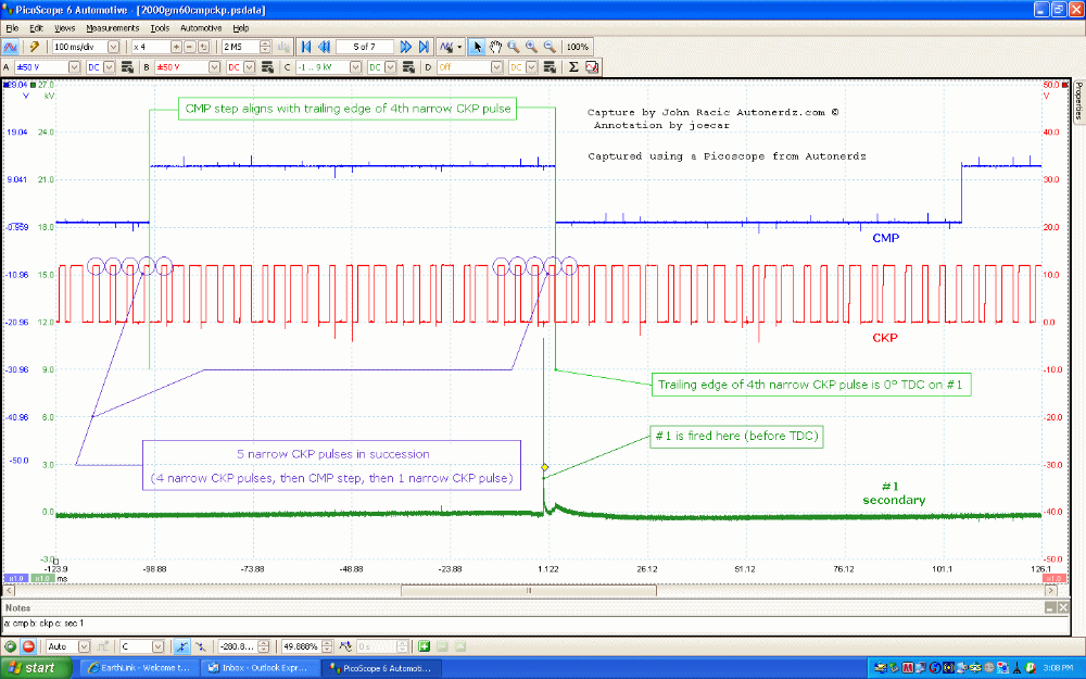 I am in need of an LS1 known good 24xckp/1xcmp waveform showing TDC. I have been able to find a few images from google but just don't trust them. One specifically shows the cmp step aligns with the trailing edge of 4th narrow ckp pulse (see attached)