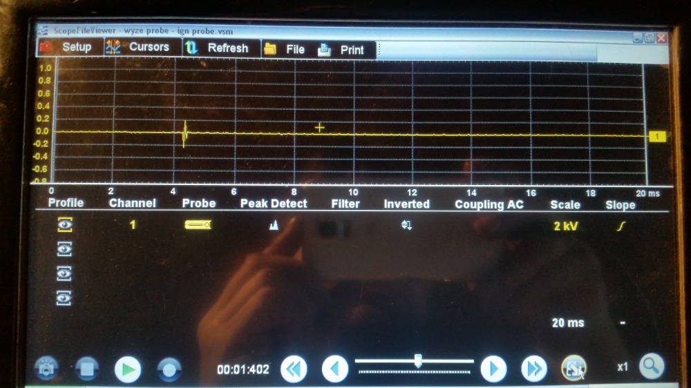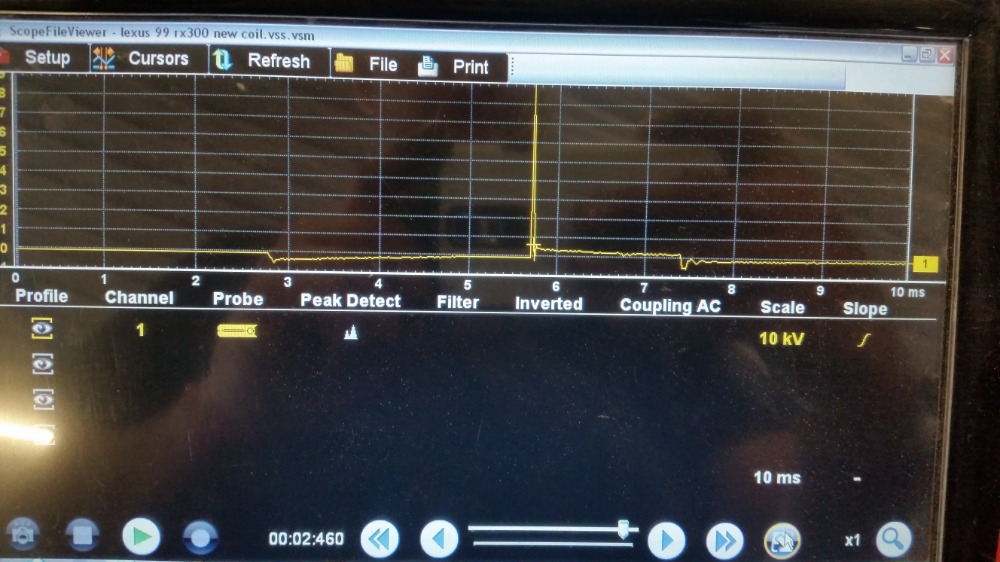 Then I had to try it out on the Scion. I've never had luck with secondary waveforms on the Toyota four wire coils. Too heavily insulated. But I was very surprised to see this: