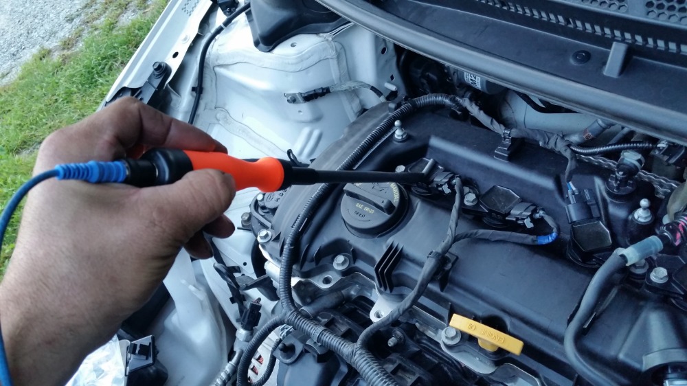 First up is an '09 Escape with the 2.5L. The attenuation factor that graywave was talking about is VERY evident here. Here's a shot of the alligator clip on the top of the coil: