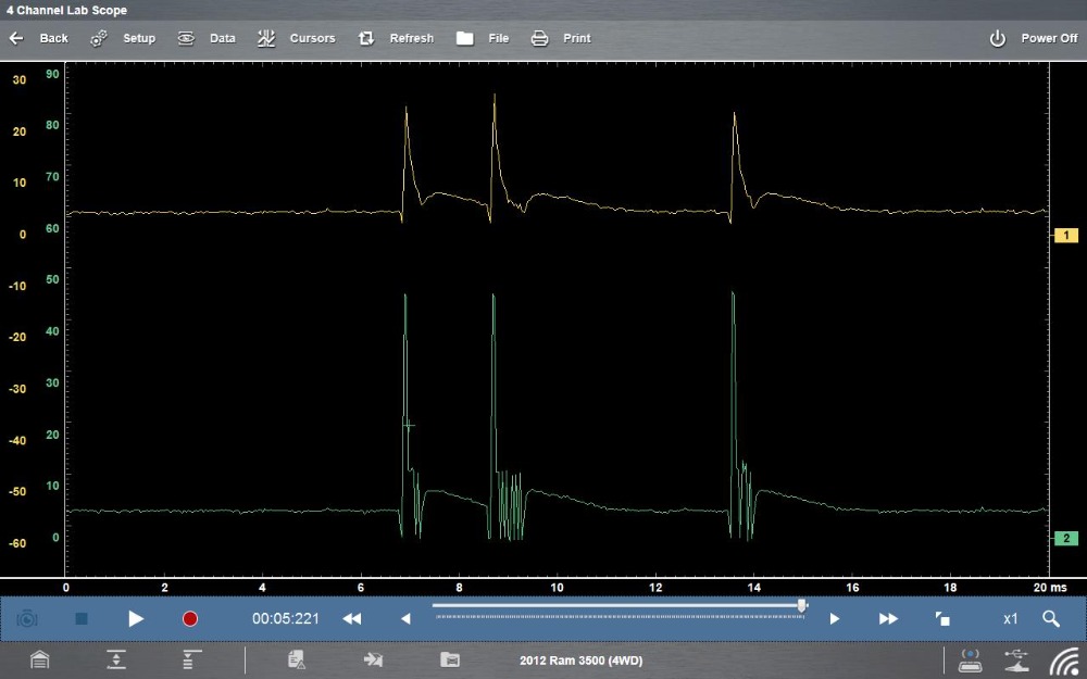 Just thought I would drop these waveforms I captured off a 2012 Ram w/6.7 cummins engine. Although not exactly the same, similar to gdi waveform. The one on the left is bad with no fuel being injected, and the one on the right is known good