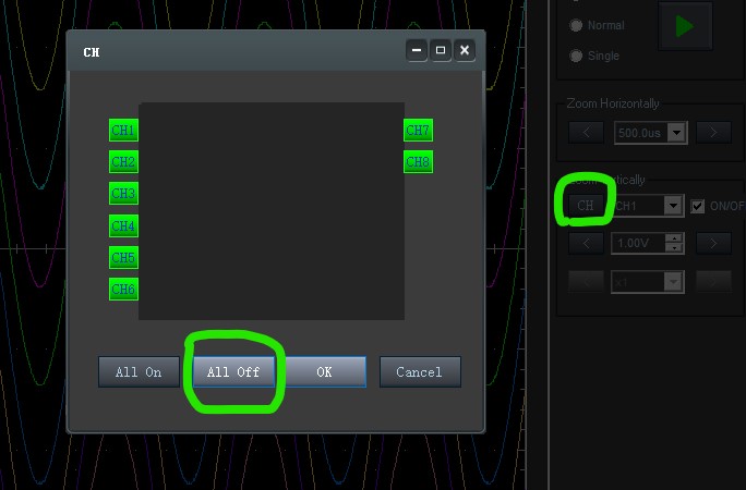 When you start the Hantek software all 8 channels come on !!! and to get it down Turning them off individually to a more useable 1 or 2 channels is a chore to avoid this use one of the presets that gives you 2 channels only.
