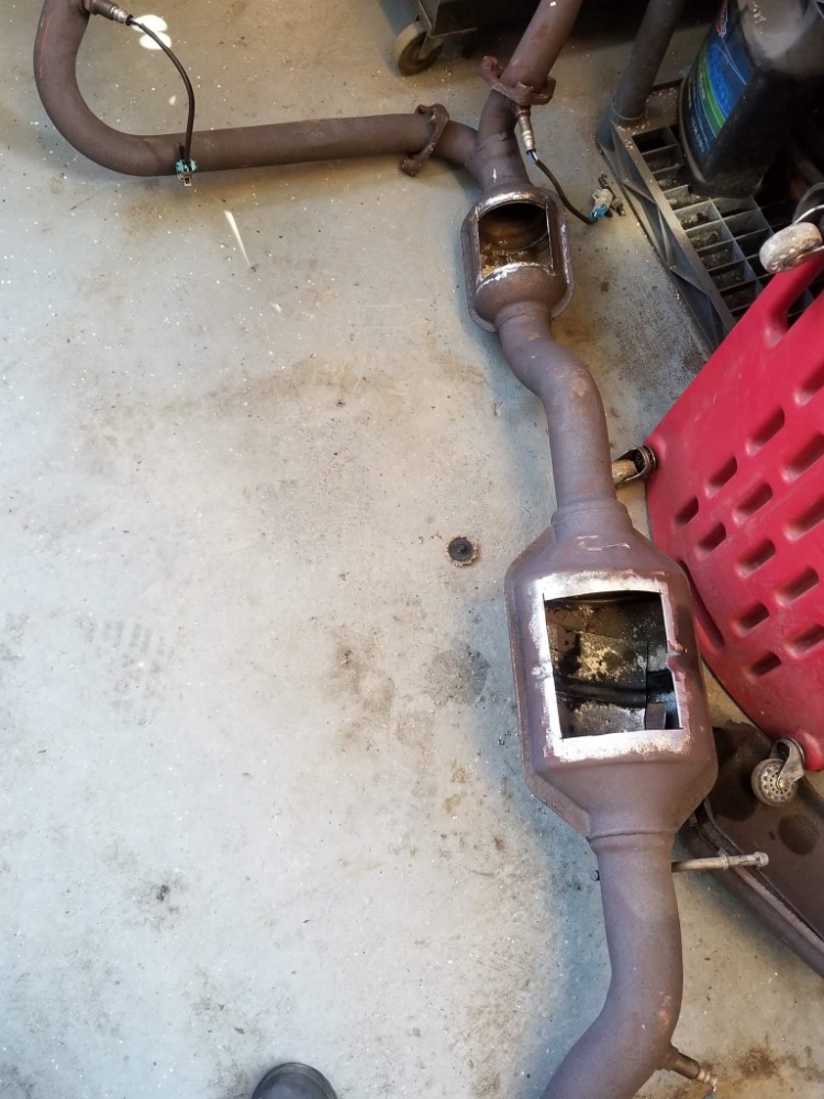 Just saw this on a Facebook group. The text says the owner has them drop the catalytic converters cut them open and clean them out then patch it back up and cover the money light so unsuspecting used car buyers don't know that they're buying a car with bad or no emissions essentially.