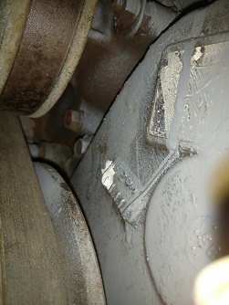 this pointer is on left side of engine if i put it on the numbered marks on right side of engine my piston is on bottom dead center ive checked timing marks on both timing gears i wonder if the harmonic balancer has slipped heres a pic of right side line up marks