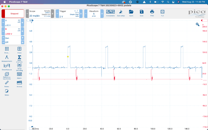 Ok, I’ll try to get them tonight. I have 4 on the motor, so I’m not sure if I can get them all today since I have to do one at a time in order to have another channel for a trigger.OMG, Look what happened with the quote function....