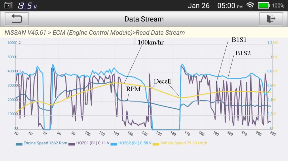 This is a snapshot of the O2 sensors working - the misfire was happening most of the time but a lot near the end of the pattern.