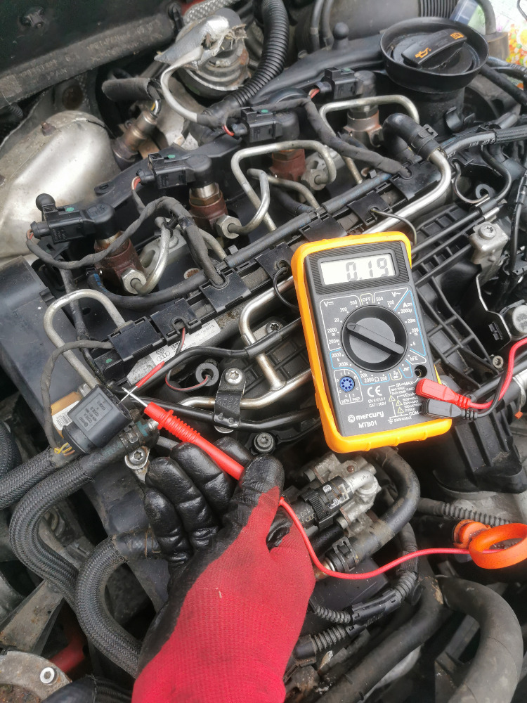 I have "tried" checking the 5V reference voltage as seen on Dan's videos, but not sure if i did it correctly. I have checked multiple sensors (don't know the names) and I could detect ground and 0.19V voltage in two sensors I checked. One of them is for the fuel rail, the other one I am unsure. Provided pictures with multimeter below. On both sensors I am able to detect battery ground, but that's the only voltage I can see. Not sure if this is the 5V reference circuit voltage.