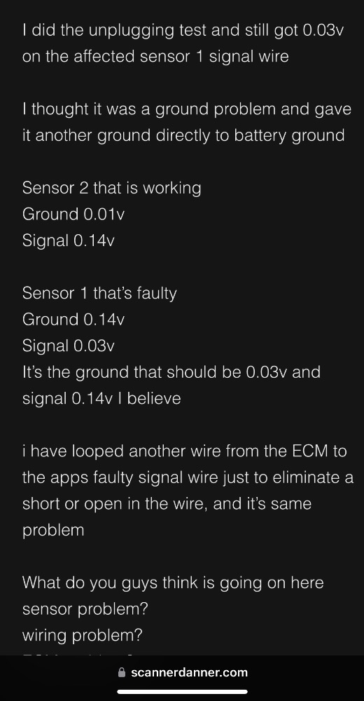 i have looped another wire from the ECM to the apps faulty signal wire just to eliminate a short or open in the wire, and it’s same problem