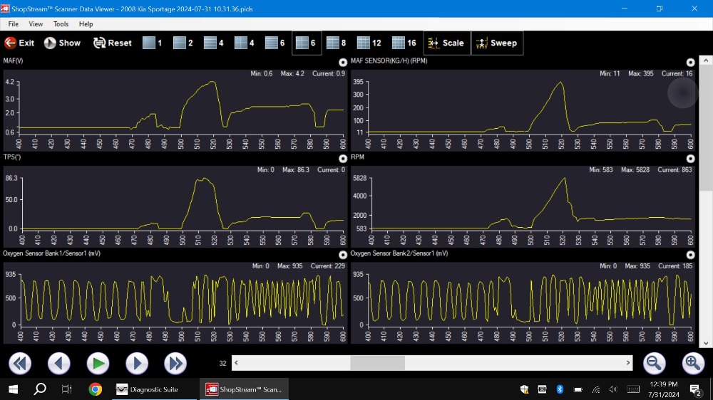 You want to see a gradual rise in the TPS all the way to WOT, not just snap throttles. Snap throttles are good for checking Oxygen Storage Capacity of Catalytic Converters.