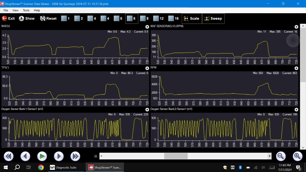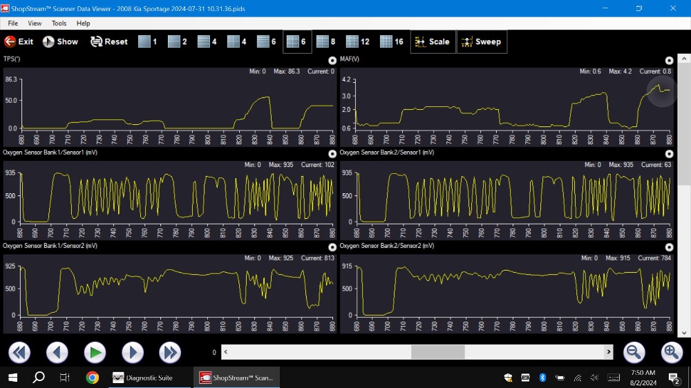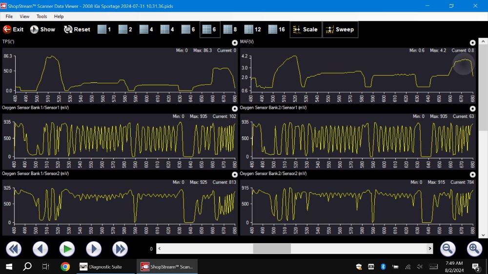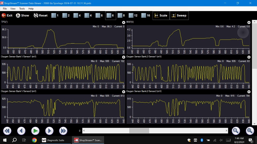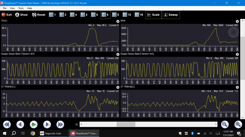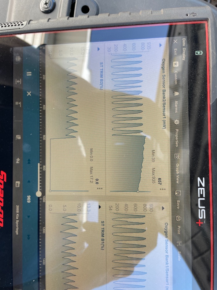 So here is another attempt, I induced propane into the system to try and get these O2s to STICK RICH. I havent tried this very often, so again, I am not sure what to expect. But, the O2s never stuck rich but kept on switching, as I slowly increased the propane. when the trims go to 0, is when it stalled. Sorry my picture sucks, and I didnt get the other side in the photo, but the other O2 did the same thing. But I am just using the regulator on my torch, so hard to tell how much or how little I am putting in. is there a better way I should be doing this?