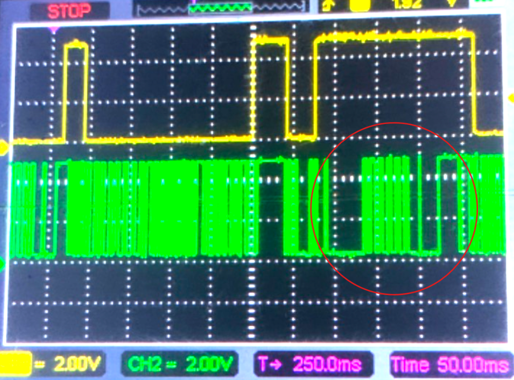 CKP in green, CMP in yellow? It sure looks like there's an issue with the CKP. Several reluctor wheel teeth seem to be missing and/or not getting picked up by the sensor.