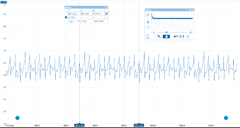 Im working on a bike that has some very intermittent issues with power loss. I have yet to encounter it myself. Im currently looking at the fuel pump felt like it was the most likely issue and easiest thing to get to. Fuel pressure was great. I would be curious what you guys think of the fuel pump amperage waveform I captured. By my research fuel pump waveforms aren't as helpful as others at diagnosing but I still dont think mine looks as clean compared to the examples of others out there. Should I be concerned about this waveform?
