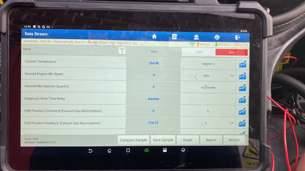 live data readings do not change when cranking