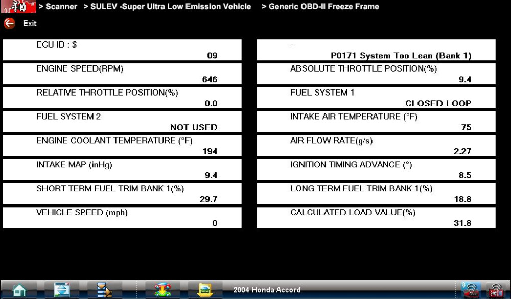 2004 Honda Accord - P0171 -