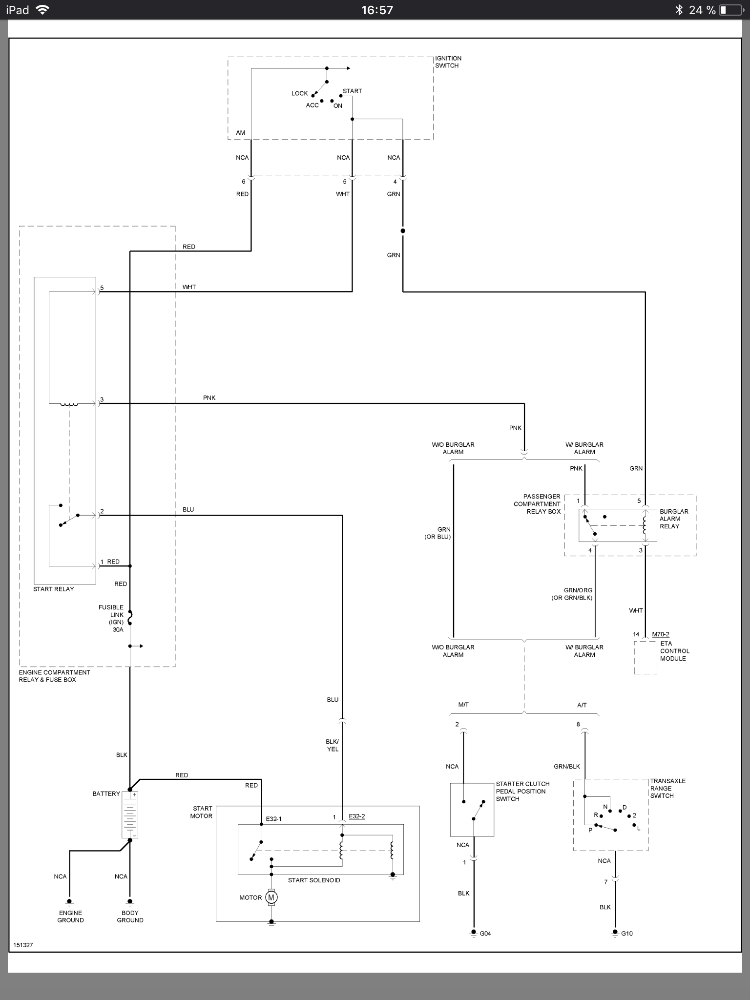 I have a 2002 Hyundai Accent that does not crank. I replaced the battery(the one in the car had a cracked case and was leaking). I check one of the videos that was trouble shooting a no crank condition with a Elantra. My interior dome light does not dim when the ignition switch is moved to the start position. I checked the starter relay. On pins 87 & 30, I was able to confirm both power and ground at the power distribution block. The relay looks new. I have power at the battery side of the solenoid but I get nothing from the test light when I place it on the S tabe of the solenoid. I am not sure where to go from here. Any thoughts or suggestions...? Thanks, Roy.
