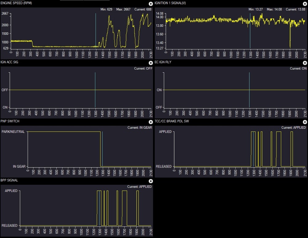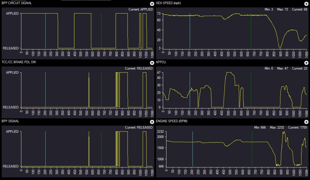 You can see the 'BPP CIRCUIT SIGNAL' shows applied up to frame 300, while the other brake pedal PIDs show released. :silly: