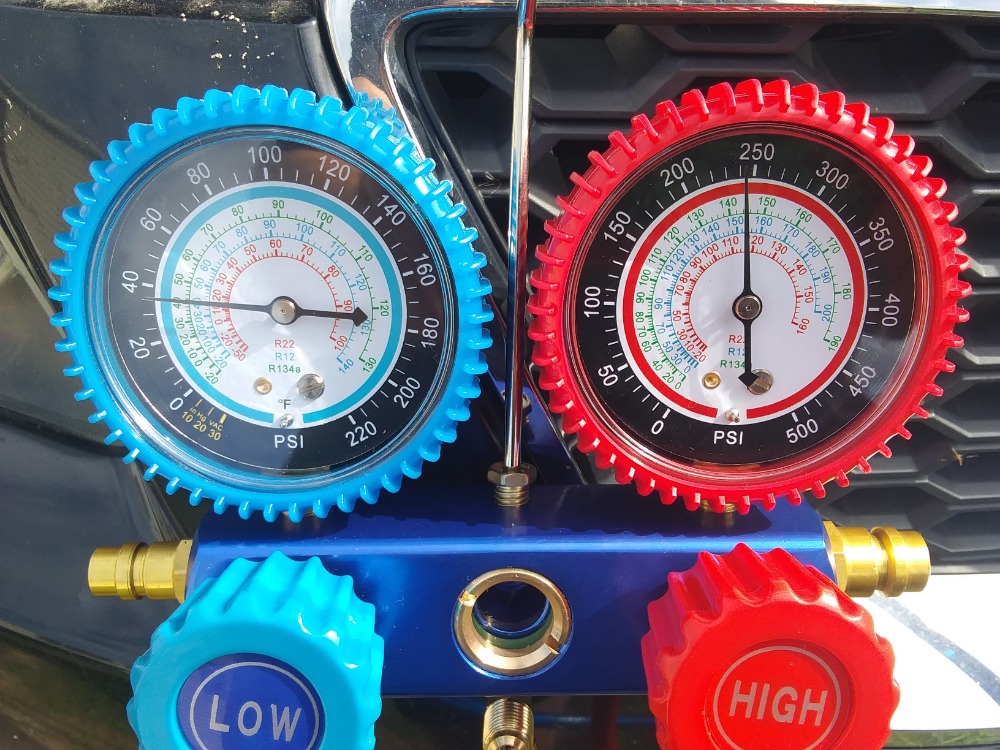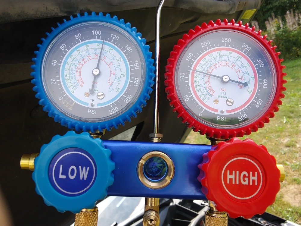 I just took a reading its roughly 90 degrees here and about 70+ perceny humidity my rest pressure was 110psi and my running pressure was 35psi on low side and around 220 230 on the high side i ran it for about 10 15mins and it blew nice cold air it never messed up on me so now i dint know whats going on. Yeah i thought the same thing but im not sure what my pressures mean as far as if and what is wrong. I did notice the compressor just ran it didnt cycle tje guages up and down or anything but it blew nice and cold... Weird man any advice would be great thanks for responding ben