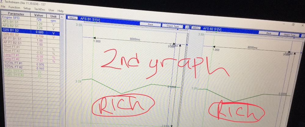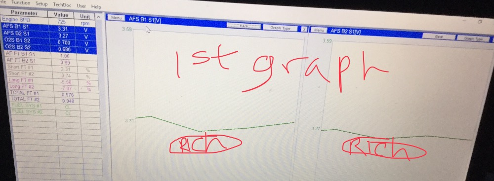 As I was watching the live data, of course my wideband A/F upstream sensors is still out of stoichiometry with low voltage of around 3.24v instead of 3.3v (running rich).