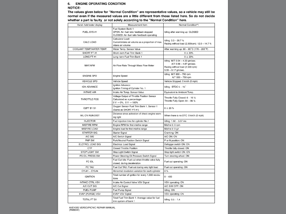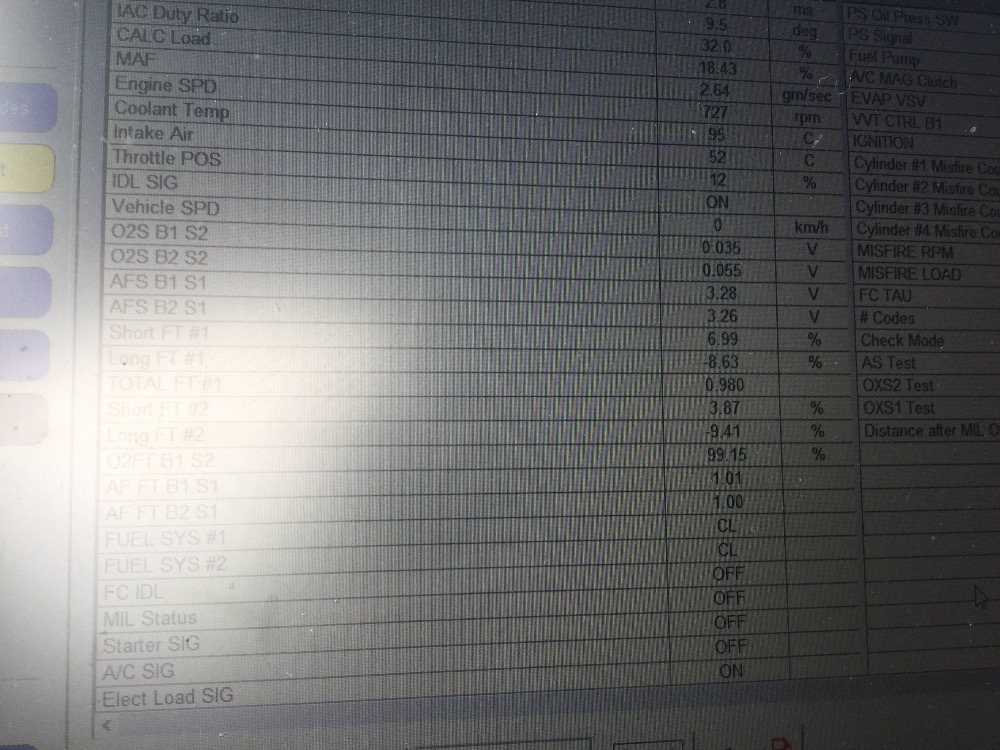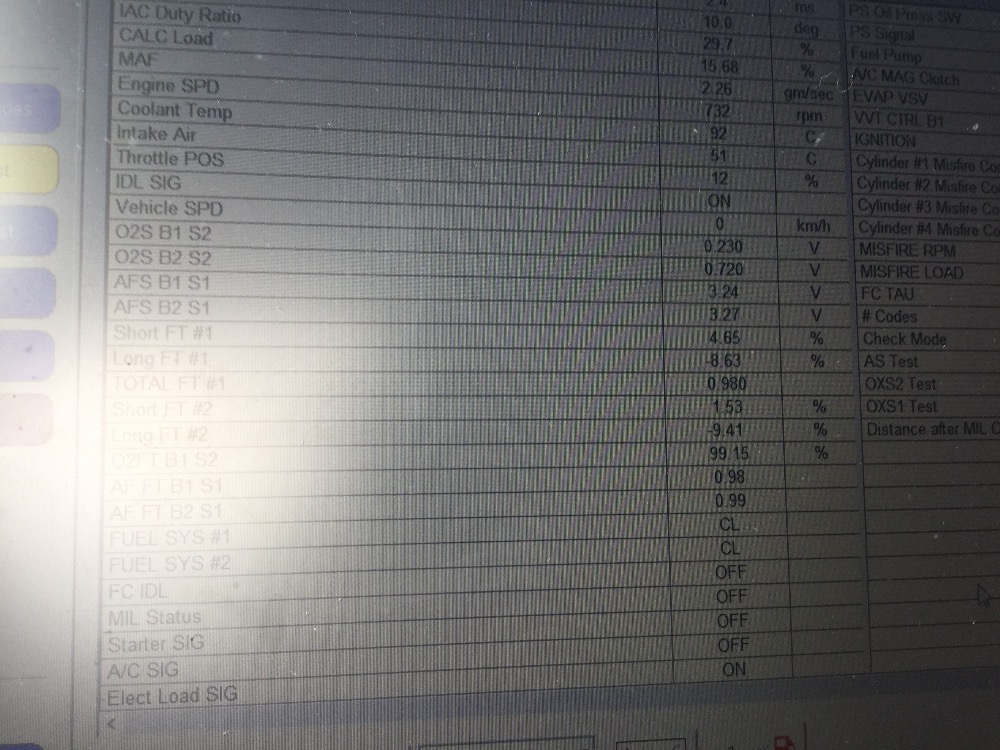 After going through one of the old threads on this forum, I am beginning to be more than convinced I need an OEM MAF sensor, simply because my first fix on my car to drive down my STFT from +25 to what I have today was cleaning the MAF sensor, I am of the opinion cleaning of MAF sensor works maybe 50% of the time. My MAF reading is acting funny under load in the parking or while driving, sometimes 54g/sec at WOT and sometimes 92g/sec. my MAF should read above 120grams/sec even though it checked out fine at idle and under load without driving following Toyota technical information, but Toyota didn’t go further to tell us how the MAF should behave under load on the highway. Most likely the aftermarket MAF I installed did not do a better job also. I have seen far too many internet posts of problems with fuel trims with people throwing in other parts and at the end the fix was an OEM MAF, even some people ran into problems using aftermarket MAF.