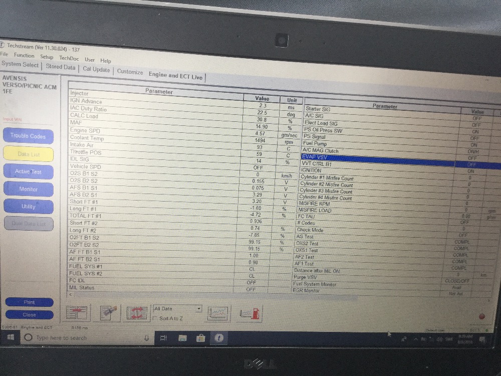 LTFT bank1: -4.72 almost the same for LTFT bank2. Although I passed inspection but on the two occasions they wrote same remarks that OBD2 self test not performed, I want to believe this remark means one of the monitors was not completed, correct me if I’m wrong. I have the Chinese Toyota techstream that I have hooked up myself and everything looks fine....all the monitors were completed except CAT monitor, and then EVAP vsv was showing off and when I tried to turn it on with the techstream STFT goes up, so I’m assuming that’s how they engineered that to work for the PCM to turn it off and on itself when needed.