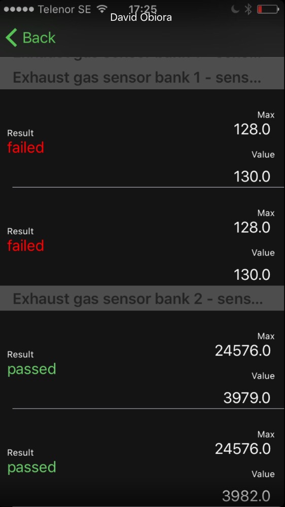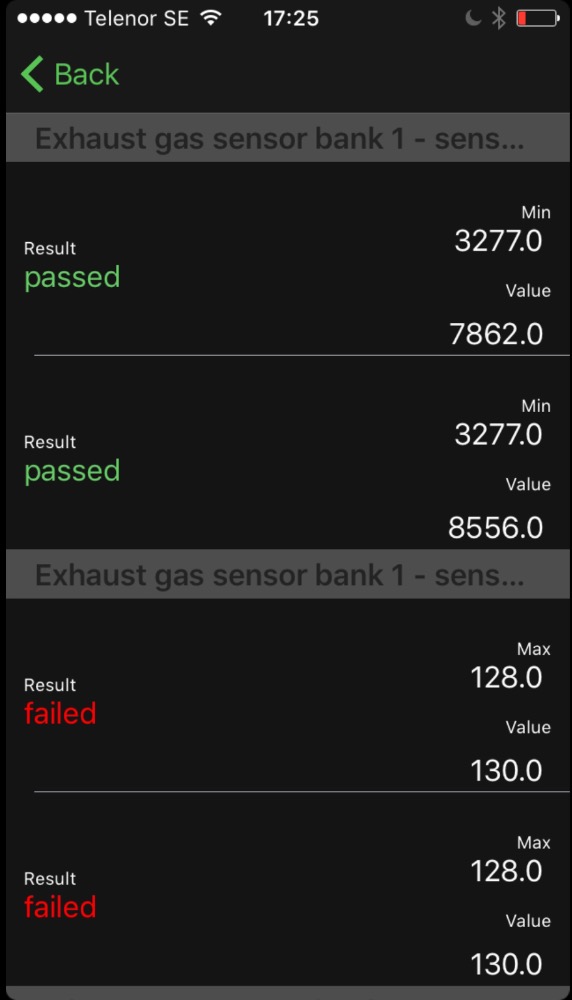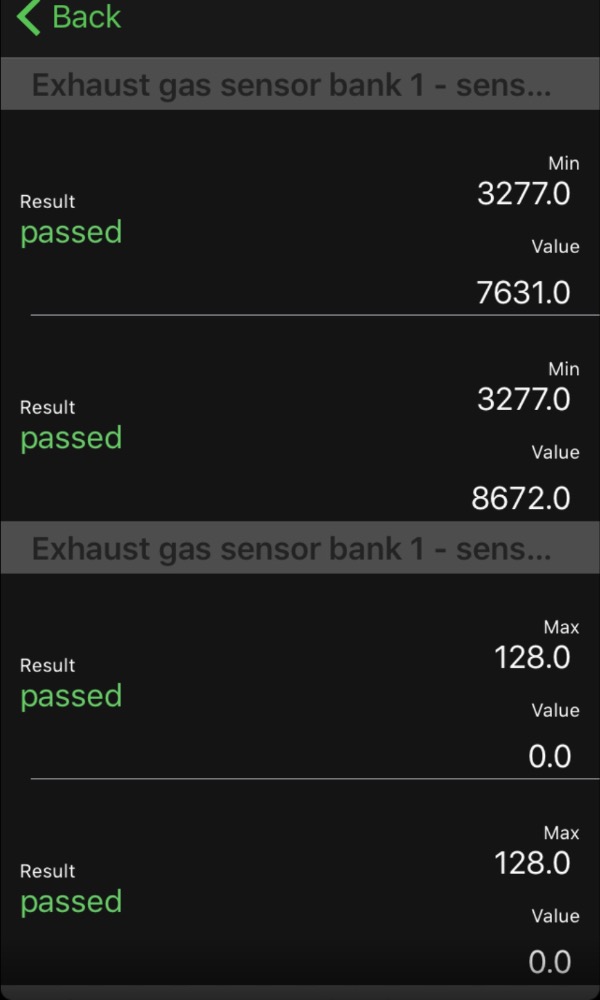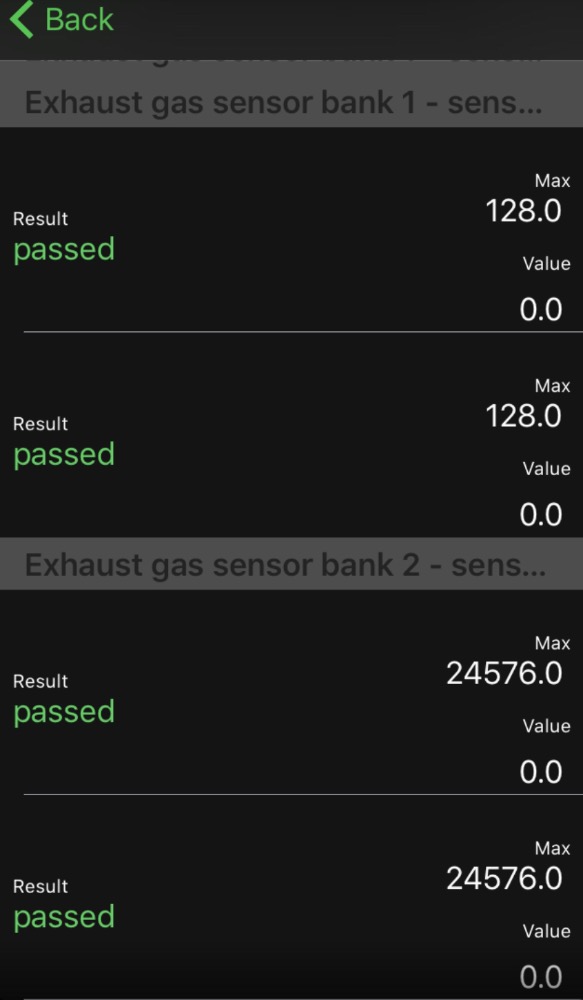 I will contact OBDCarDoctor to explain to give me more details on the parameters as they were not shown fully for lack of space I guess, or I use my iPad instead to get the full (Exhaust gas sensor bank 1 - sens...)