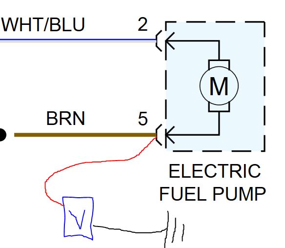 3. Cranking the engine, you have power on the WHT/BLU wire, and a good ground on the BRN wire but, the pump does not run.