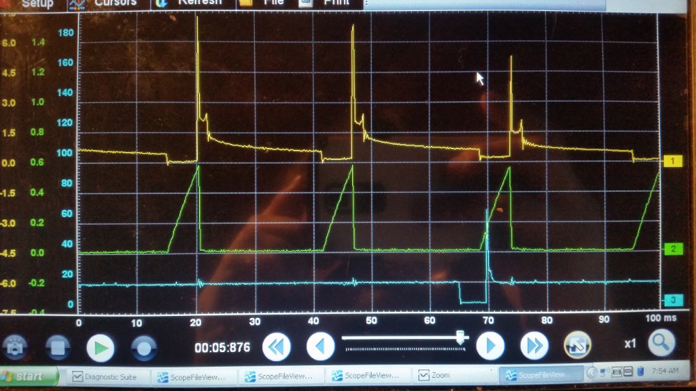 When you scope ignition control circuits on 2 wire ignition coils, sometimes its better to go right down to 20-50ms to get a full detail of the ignition waveform. Give it a shot, play around. you can send pictures of 20,50,100 and I can let you know which ones I prefer for analyzing detail just as a reference for your scoping future. The actual "numbers" for time base and voltage scales I don't put to much thought into, its more of just wanting the right settings to get the detail or repetition you need to make a call. I do have a generic time base range which I normally go to and that is 20-50ms usually for ignition and 100-200ms for mostly everything else.