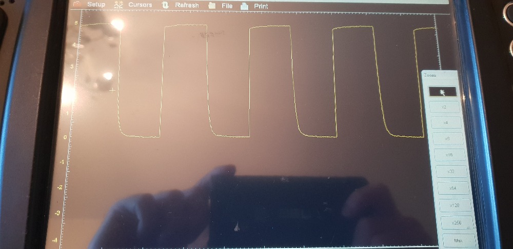 That one Cam pic with the spike really bugs me, when the signal is high, something is trying to pull it down to ground by that 1/2 volt.