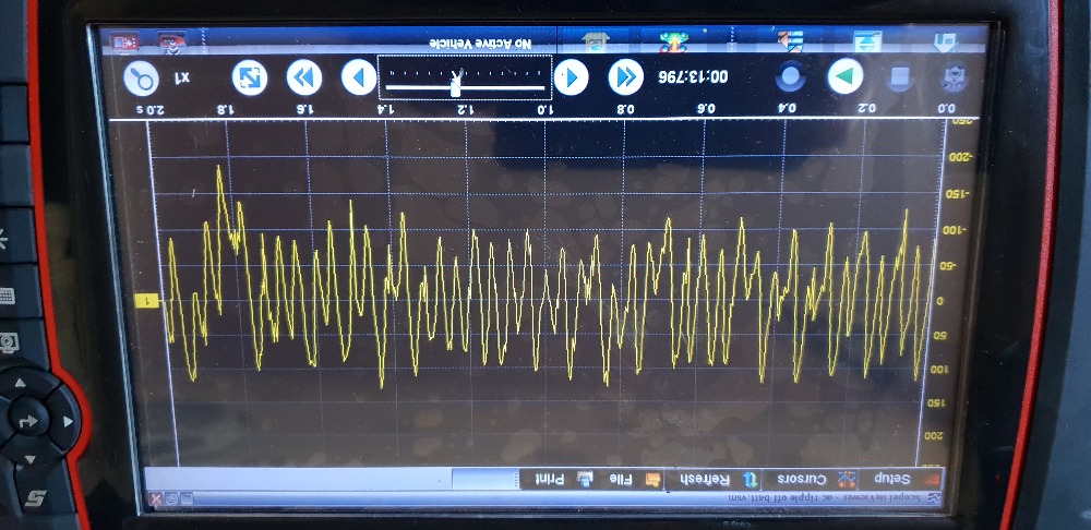 So upon putting my verus scope on the crank signal wire with the car running im getting a waveform that i cant work out, im getting a fault code for a cam sensor fault but when iv scoped the cam sensor everything is as it should be a nice square wave from 5v to 0v but when iv scoped the crank sensor its a 3 wire sensor and like i say the waveform is wierd. Iv attached some pics of the crank waveform.