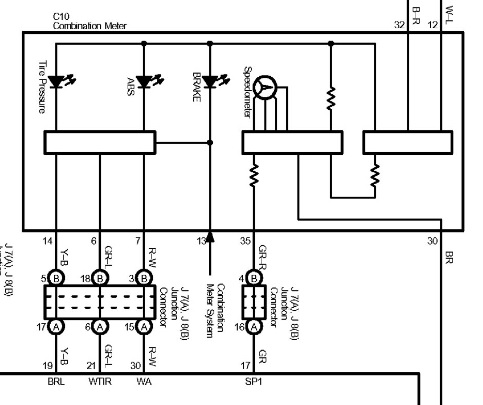 I think this is the speedo link between the ABS module and the cluster? I'd be interested to know what's happening on that wire when the speedo shows zero.