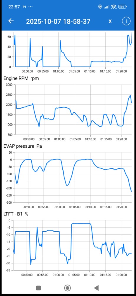 In the attached screenshots in the top you can find purge valve command, rpm, tank pressure and LTFT.