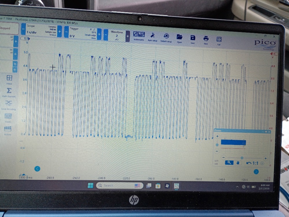 Need some direction, just took my first waveforms! 2011 ram 4.7l 1500 p0344 intermittent Cam signal. I took a scope of the crank and cam on my pico 2204a and not sure what I'm exactly looking at. I have 5v ref on both when checking harness unplugged but neither seem to pull fully to it. Both the cam and crank seem to have this issue on the waveforms. I'm leaning towards two sensors, is this correct in my thinking?