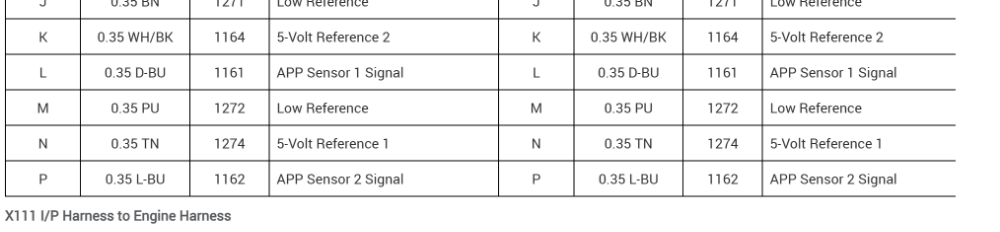 I am back probed into x111 pin N for 5v ref 3 to APP (according to OE reference diagram and powertrain management) and 5v ref 3 right into MAP sensor. From X1 of ECM, pin 33 is a tan wire, remains tan through x111 then into APP. Connector view shows Pin N on X111 to be a 5v ref 1?