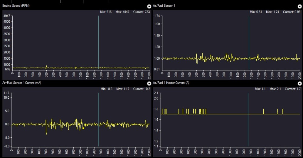 For whatever it's worth, I went and dug up some known good data from another '02 WRX that got a Denso AFR sensor due to a failed heater. The data afterwards showed a typical current draw of around 1.7A at idle. That's processed data through the scanner, but still a good point of reference for your testing.