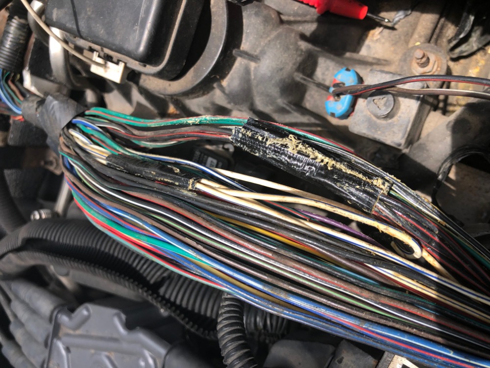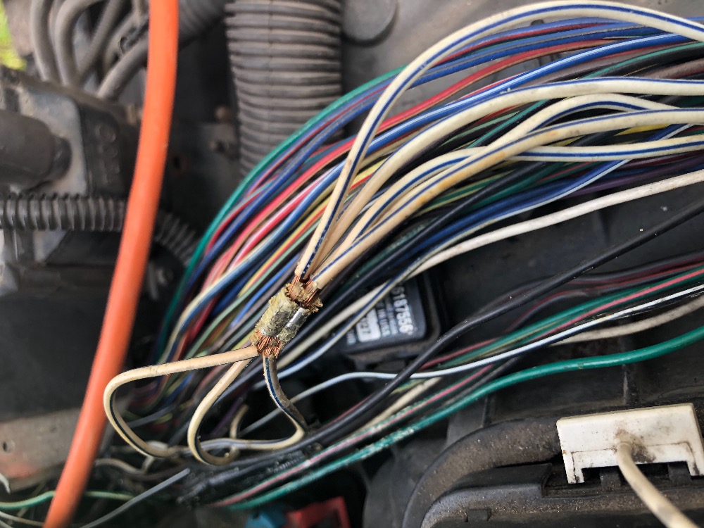 Thanks for all the help, I really appreciate it. Of course things get a little more exciting. I found 5 white and blue wires joined into a single line. They were wrapped with duct tape which looks pretty bad. Further down there are 5 white and blue crimped with another 3 white and blue lines. I have no clue what they did to this truck.