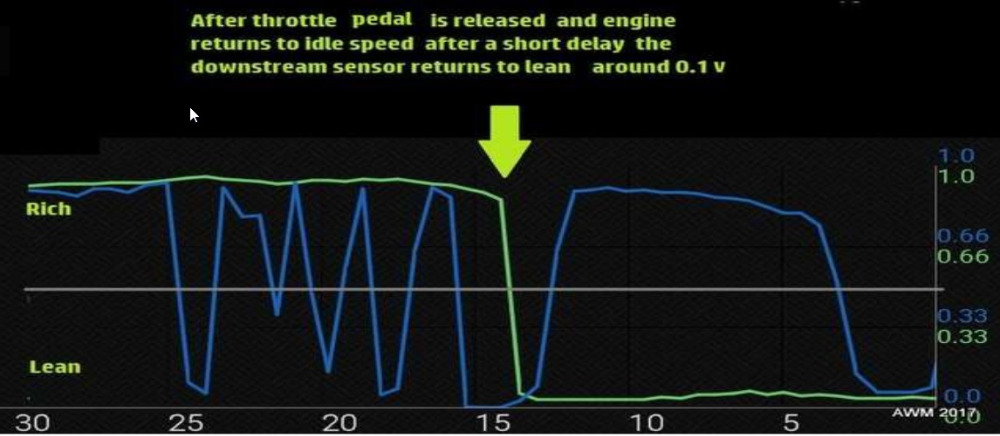 I say usually because I see more and more vehicles with downstream sensors that switch frequently, or appear to follow the upstream, and still pass their catalyst monitors every time.
