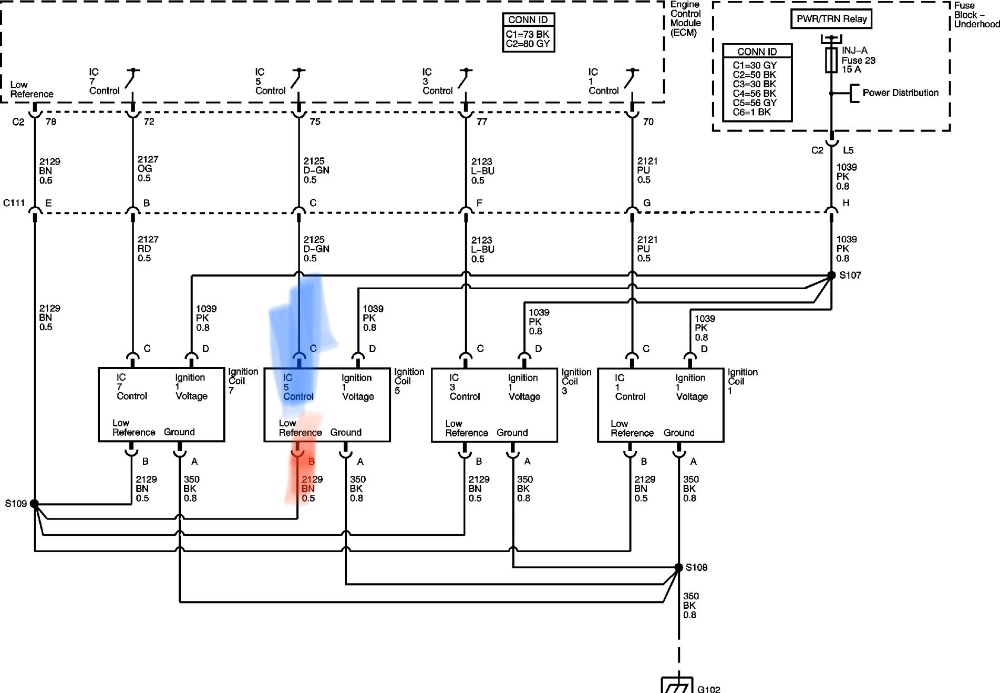 I used the test light to positive and probed one of the injector harnesses and the light came on. I then unplugged the ECM and the light went out. I purchased another ECM and programmed it and now the injectors are fine. Engine runs ok but still has the cylinder 5 misfire along with Bank 1 lean code P0171 and a bank 2 rich code P0175. I really dont understand that one. I guess all the fuel that was dumped into the exhaust either clogged up the O2 sensors or catalytic converter. I will look at that tomorrow.