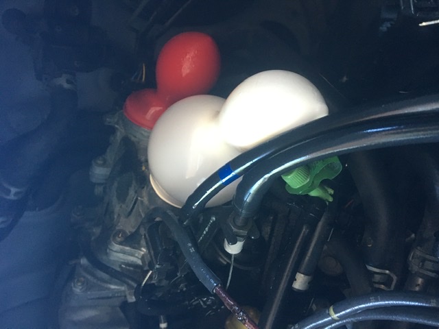 Check my high tech vacuum leak check. Two balloons over intake. Pressurize with bike pump. If I can inflate balloons, seems like I’ve plugged the leaks
