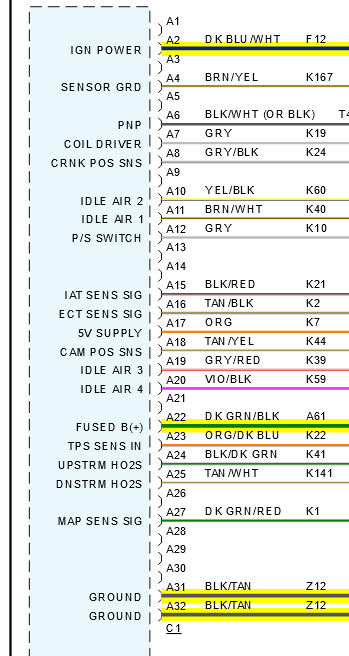 pics of 32, 1 and 22 wires. Also pic to show the back of the cluster going into the pcm to verify it was the right one.Dukeh wrote: