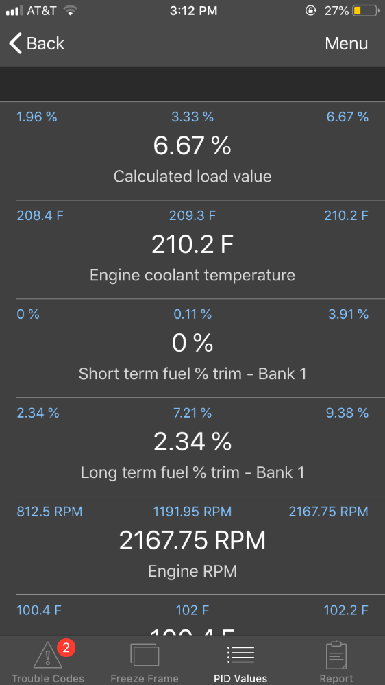 The issue I am having is I have a very slight stumble at idle. No codes, and I am ruling out the IAC due to it being fairly new and the pintle responds well with KOEO and retracts just the same. I notice that at idle my LTFT is sometimes as high as 13% at idle with closed loop just starting, but after driving around a while it evens out at around 6-8% at idle. My STFT numbers are always hovering 0% so no problem there.