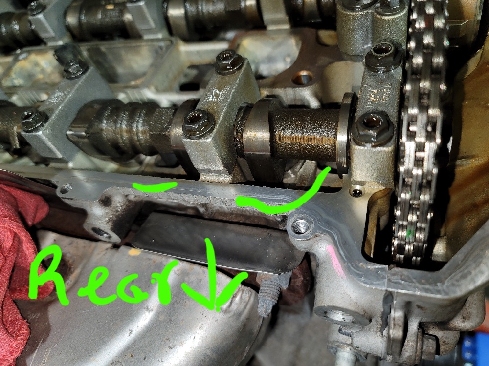 Also looked at the rear of cams from rear of engine view and there's a horizontal line across back of cams where the timing alignment tool would go. I have it at home somewhere just need to find it and bring it as I know there's more than 1 piece besides the horizontal bar. There's a round pin rod that I recall drops or goes in somewhere. Have to look service information up again.
