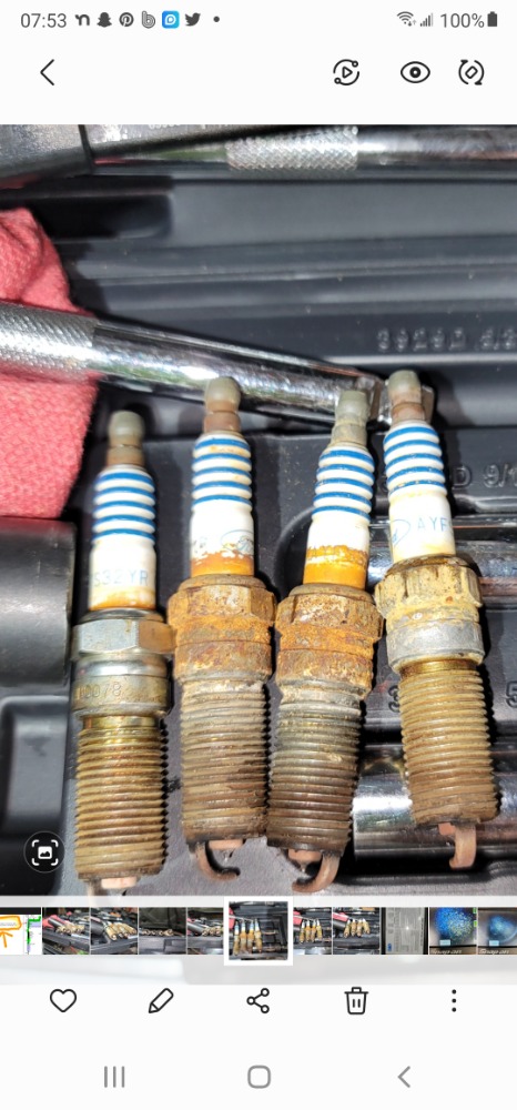 Also putting a picture of the plugs from the engine in this post. #1 thru 4 cylinder from right to left.
