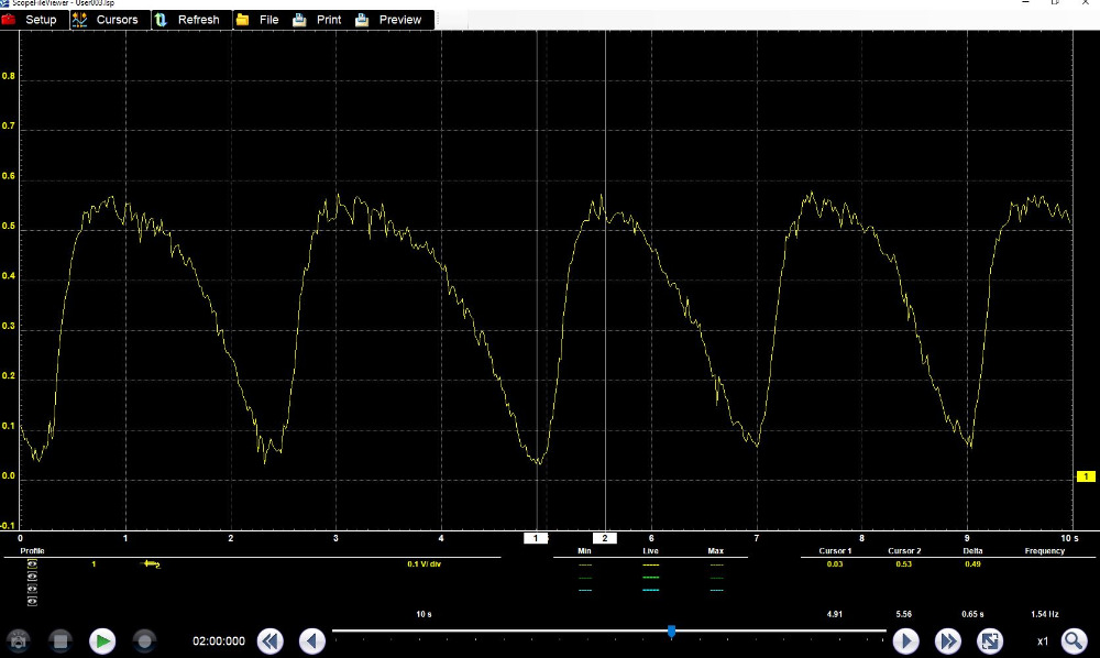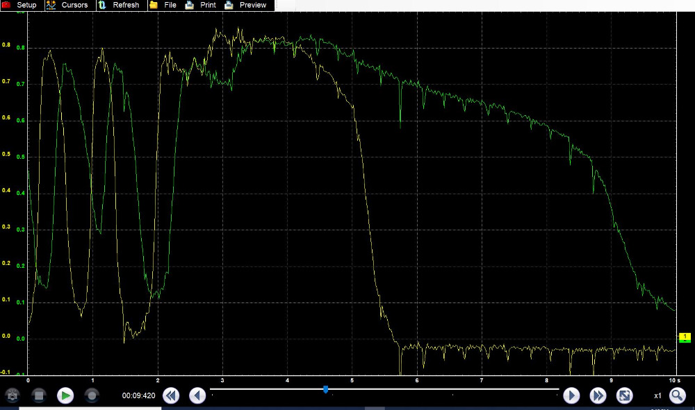 The first pic is fully warmed up, at ~2500 rpm. As you can see the range is ~0 to 550 mV. For that portion of the scan, total fuel trim was ~5%. At idle, I'm flat-lined on voltage and total trim is 20-40%.
