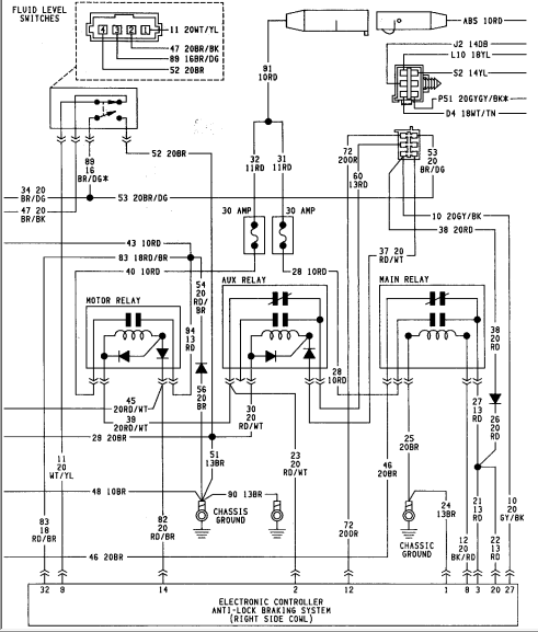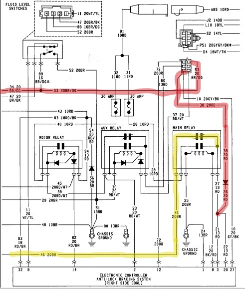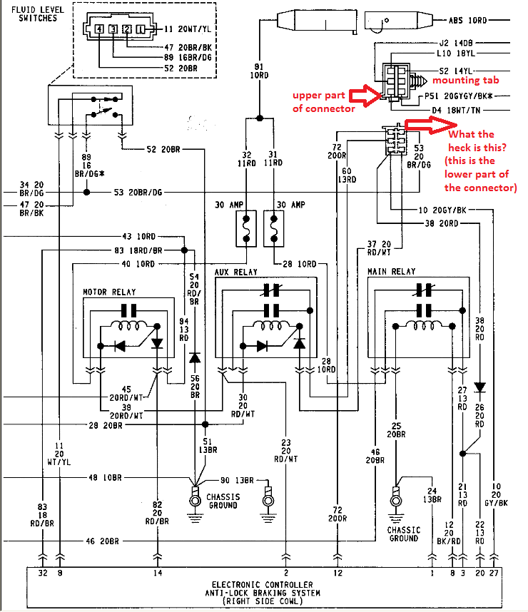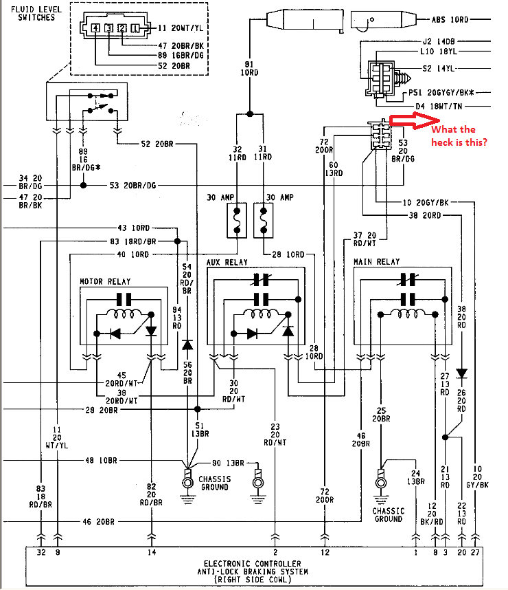 Again, I am not sure how the ABS computer gets powered up. Does the "AUX" relay send power to the distribution box and from there pins 12, 3, 20, and 27 get powered up on the ABS controller? But if that is the case, where does the "AUX" relay get its power from? Could there be something missing from the wiring schematics.