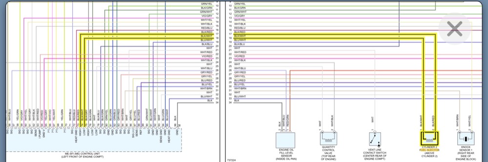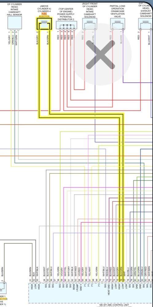Here’s diagrams if you need em. If you find that you don’t have 12v on power side then you’ll need to check powers going into the module. Same thing goes for the ground. If you don’t have a scope and want to verify a bad ground you can use test light on B- and the ground wire at the injector. It shouldn’t light. You could also go B+ to ground at the injector and crank it and see if it pulses. If not, then check the grounds.